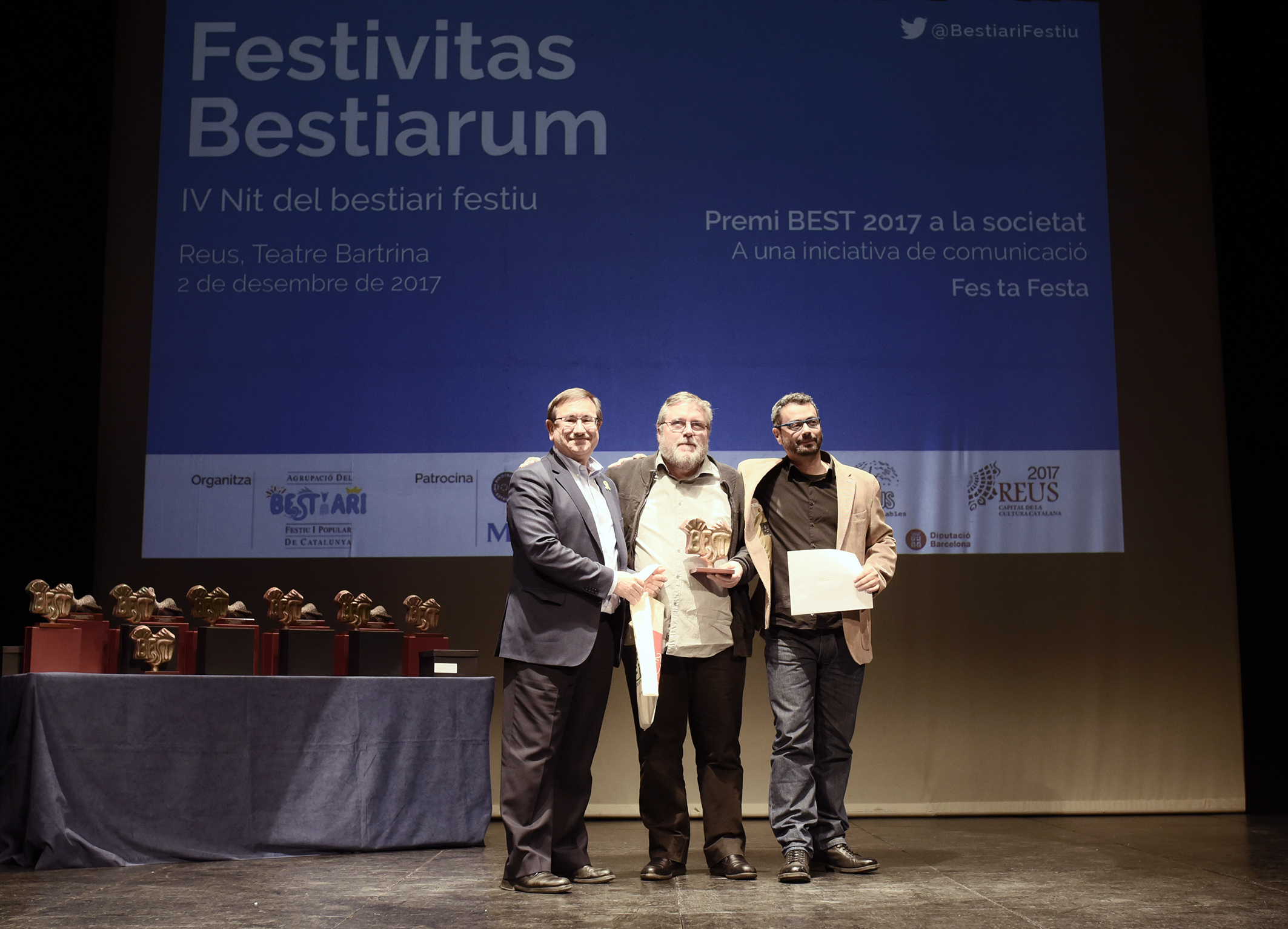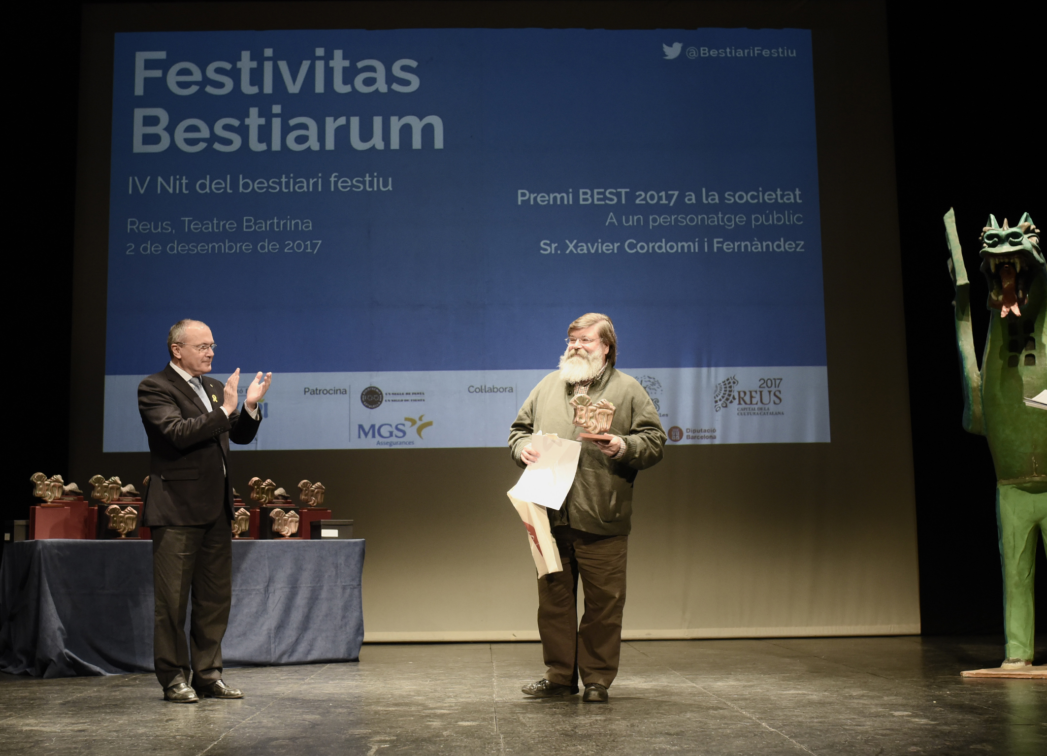 • Premi BEST 2017 a un personatge públic: al dinamitzador cultural Xavier Cordomí, de la Casa dels Entremesos, per la seva proximitat i vinculació a l’àmbit del bestiari, i com a fundador de diferents entitats, entre elles el Col·lectiu Santa Fe per al bestiari festiu.