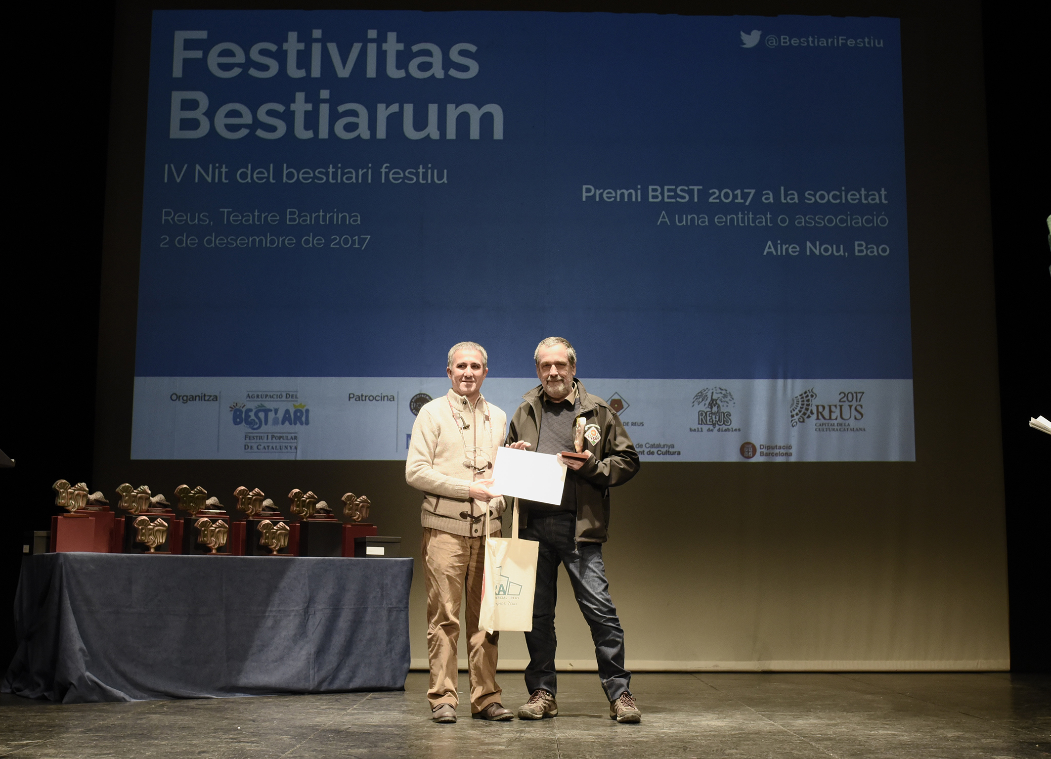 • Premi BEST 2017 a una entitat o associació: Aire Nou de Baó, per la defensa de la llengua i la cultura catalanes. Una entitat modesta que va sorgir d’un grup de gent del poble, que treballa la cultura popular catalana de manera transversal, i que fa 20 anys que organitza diades de cultura popular a la Catalunya Nord