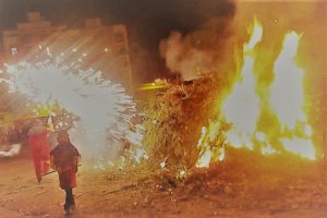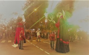 Plantades totes les peces al davant del Casal Jove del Grau de Castelló, i mentre s’ultimaven els aspectes d’intendència, els integrants de les diferents van poder fer petar la xerrada, i escalfar els ànims, abans de fer un cercavila sense foc pels carrer del voltant del  la Parròquia de sant Pere, per seguir la tarda amb els  instruments de percussió de Botafocs i els tocs dels Dolçainers i Tabaleters del Grau, que anunciaven els actes de la nit.