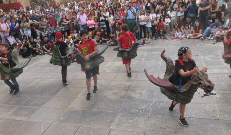 La benvinguda dels organitzadors i  la breu  presentació dels Dracs Bessons van iniciar els actes del 20 aniversari dels amfitrions, ja a la Plaça Major,  amb l’encesa d’un rètol i bateries de confeti.  Tot seguit es van desenvolupar els balls de les figures de les entitats. Els forts aplaudiments van tancar tots els balls.