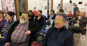 Després de la mestra de Braille, l’autora del conte, Mar Calvet, va acabar d’explicar com la Víbria es va fer de la Colla de la Plaça Nova. A l’hora de fer-ho va fer una proposta als oients: que es posessin un antifaç per despertar el sentit de l’oïda i conèixer, només amb la veu i la imaginació, la història de la Víbria.