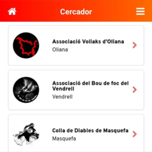 Un dels apartats interessants de l’app és que té un llistat actualitzat amb la informació de contacte (telèfon i correu electrònic) de totes les entitats que participen en la plataforma, la qual cosa permet estar en contacte directe amb els responsables de cada colla.