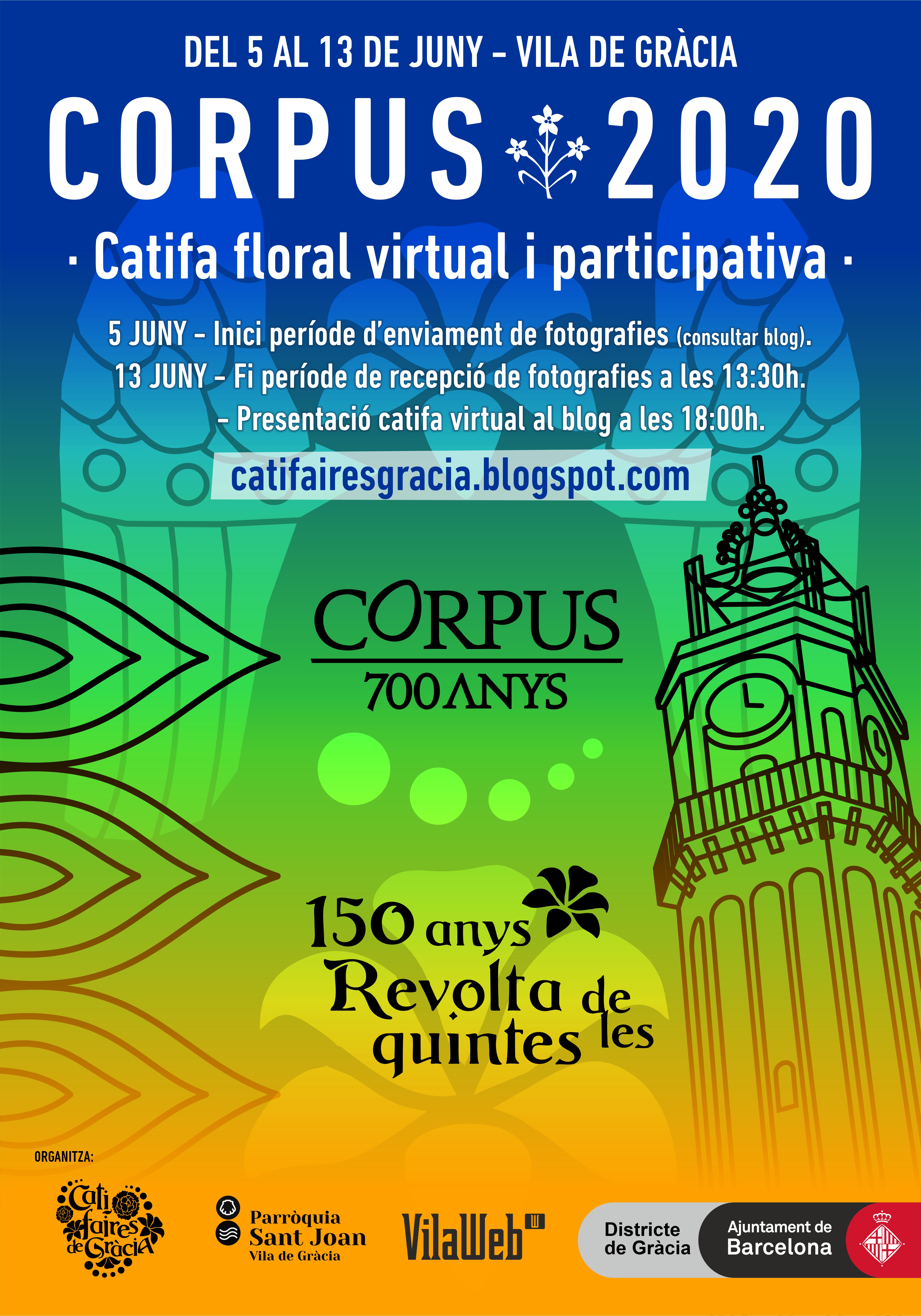 Catifaires de Gràcia són un col·lectiu de persones procedents de diferents àmbits de la cultura popular que s’apleguen per fer catifes de Corpus. Enguany la seva activitat s’ha vist afectada per la crisis sanitaria de la COVID-19. És per això, i mantenint el projecte inicial de catifa que havia de fer-se a la plaça de la Virreina davant de la Parròquia de Sant Joan de Gràcia, què han reconduït l’activitat convertint-la en virtual on tothom hi pot aportar una imatge obtinguda amb el telèfon mòbil, ordinador etc.