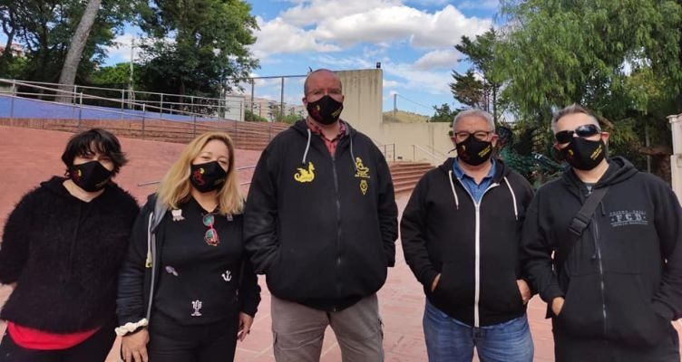 (Foto: La Colla de Diables del Carmel i del Drac Capallà d’Horta amb les mascaretes de l’entitat)