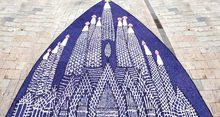 Aquest 2021 serà la segona vegada que la Federació Catalana de Catifaires participi en les Festes de Santa Eulàlia de Barcelona. L’any 2019, 50 catifaires d’arreu de Catalunya van fer una catifa de vuit metres de base i deu d’alçada titulada La Sagrada Família de Punta en Flor. “Ho vam fer principalment amb clavell blanc i clavell desfullat i va ser difícil d’elaborar, ja que vam haver de dibuixar línies rectes amb pètals de clavell”, destaca Pallarès.