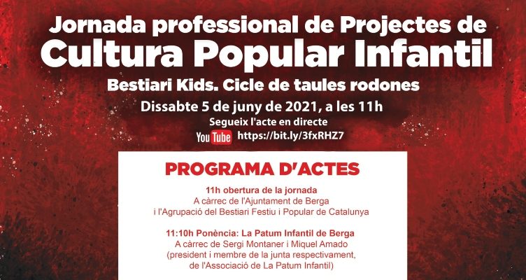 L’activitat, titulada Jornada professional de projectes de cultura popular infantil. Bestiari Kids: cicle de taules rodones, tindrà una durada de dues hores (d’11 a 13 h) i serà presentada pel comunicador cultural Pau Benavent. L’acte, organitzat per l’Ajuntament de Berga conjuntament amb l’Agrupació del Bestiari, proposarà mitjançant quatre ponències diferents línies d’actuació en la gestió de grups infantils i juvenils.