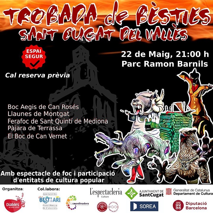 L’acte es farà les 21 h al Parc de Ramon Barnils i per assistir-hi caldrà reservar entrada prèvia en el següent enllaç. En ell es podran veure les següents figures de bèstiari: la Pàjara de Terrassa, el Llaunes de Montgat, el Boc Aegis de Can Rosés, el Ferafoc de Sant Quintí de Mediona i el Boc de Can Vernet.