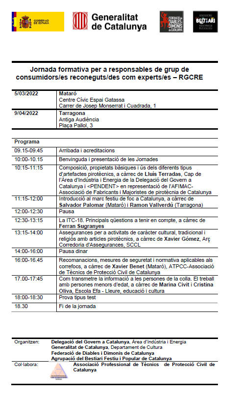 Oberta la convocatòria de cursos RGCRE pel 5 de març i el 9 d’abril