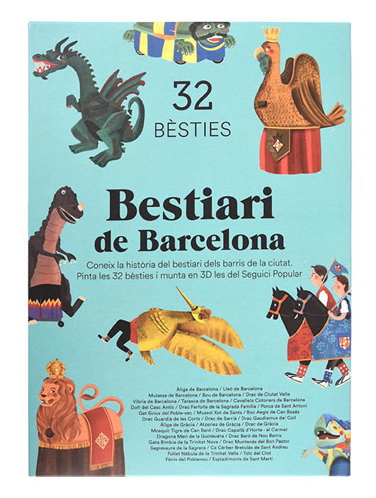 Si voleu conèixer algunes de les principals bèsties de Barcelona, enguany des de l’Ajuntament de la ciutat s’ha editat un llibre-joc amb retallables i dibuixos per pintar. En total s’hi poden trobar 32 bèsties il·lustrades per Laia Berloso i presentades per Nico Alonso, que n’explica la seva història. En la publicació els nens i nenes descobriran d’on surten els dracs, les àligues, els lleons, els bous i les mulasses barcelonins i podran inventar-se historietes jugant amb tots ells.