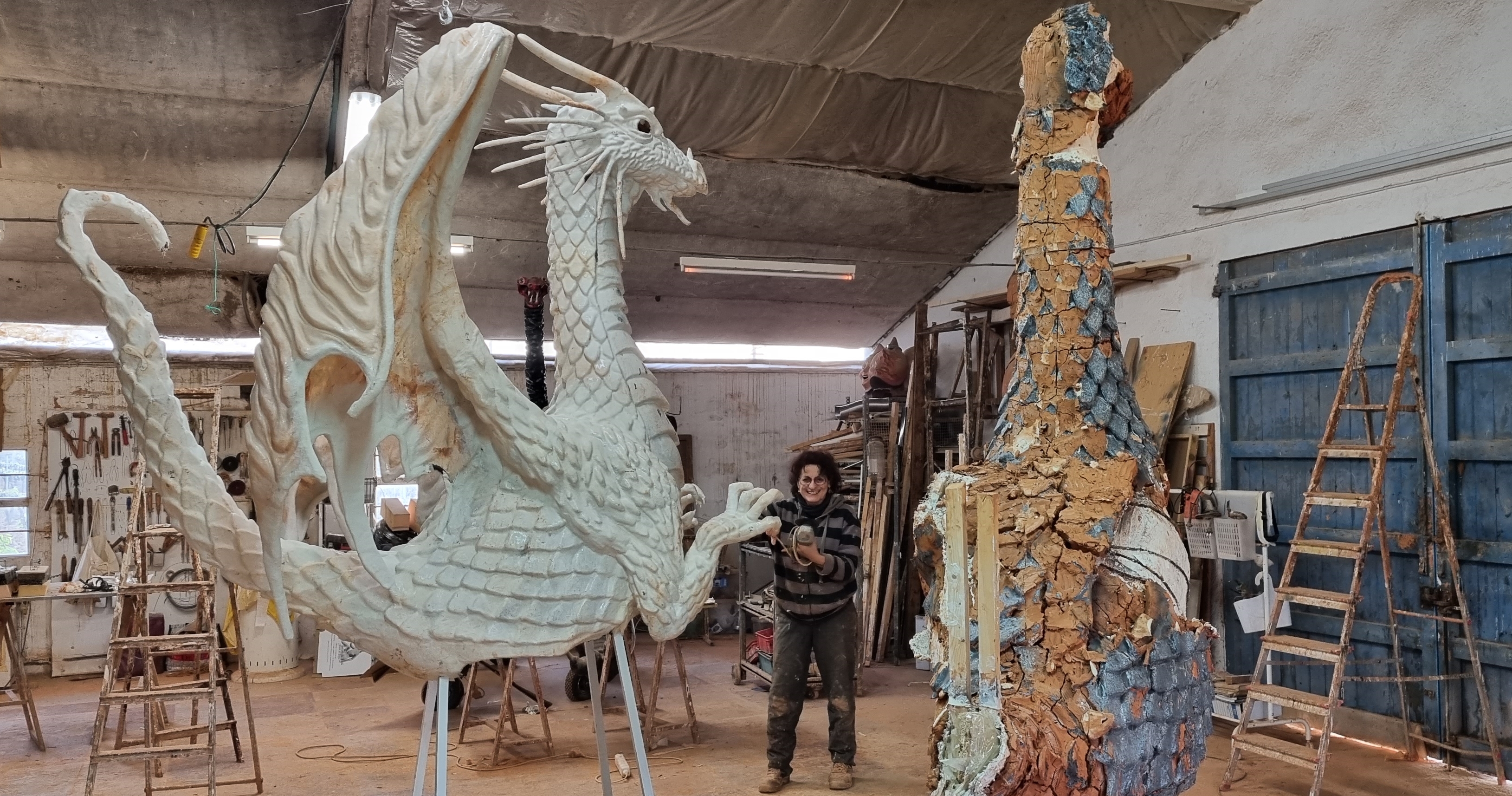 En aquest sentit d’homenatge, el drac és una peça simbòlica amb un coll llarg i vertical que dona sensació d’espiritualitat. El cap té la boca tancada per tal de donar-li noblesa i serenitat, fugint de l’agressivitat habitual dels dracs. Al damunt del cap hi ha un diamant que simbolitza llum, vida, constància i autenticitat. Les ales no són llises, estan treballades amb formes corbes com modelades pel pas del temps.