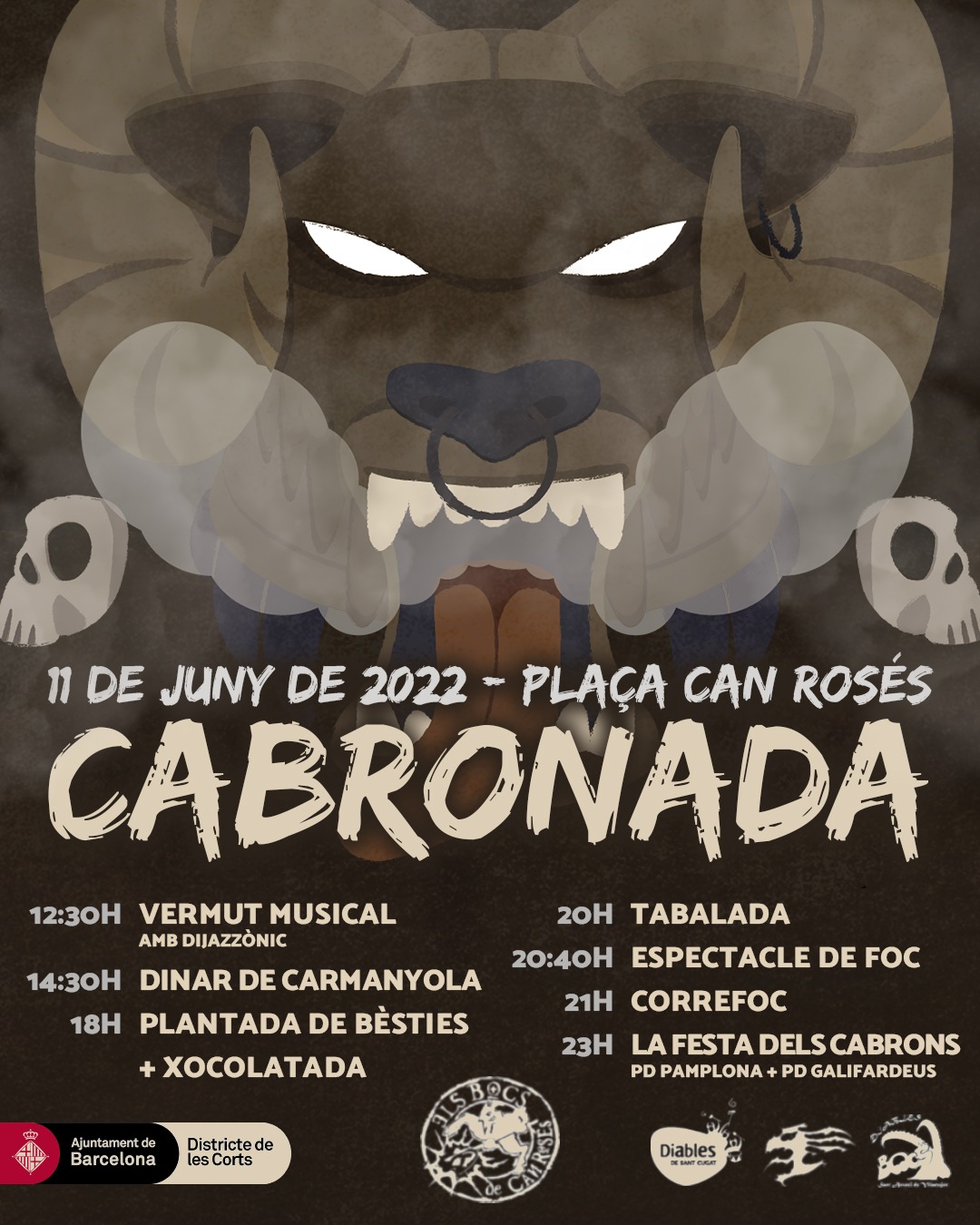 El pròxim dissabte 11 de juny, algunes de les bèsties més terrorífiques de Catalunya passejaran pels carrers i les places de les Corts. S’hi celebrarà la quarta edició de la Cabronada, la Trobada de bèsties de foc de les Corts. L’acte, organitzat pels Bocs de Can Rosés, es preveu com una jornada de cultura popular, música i foc.