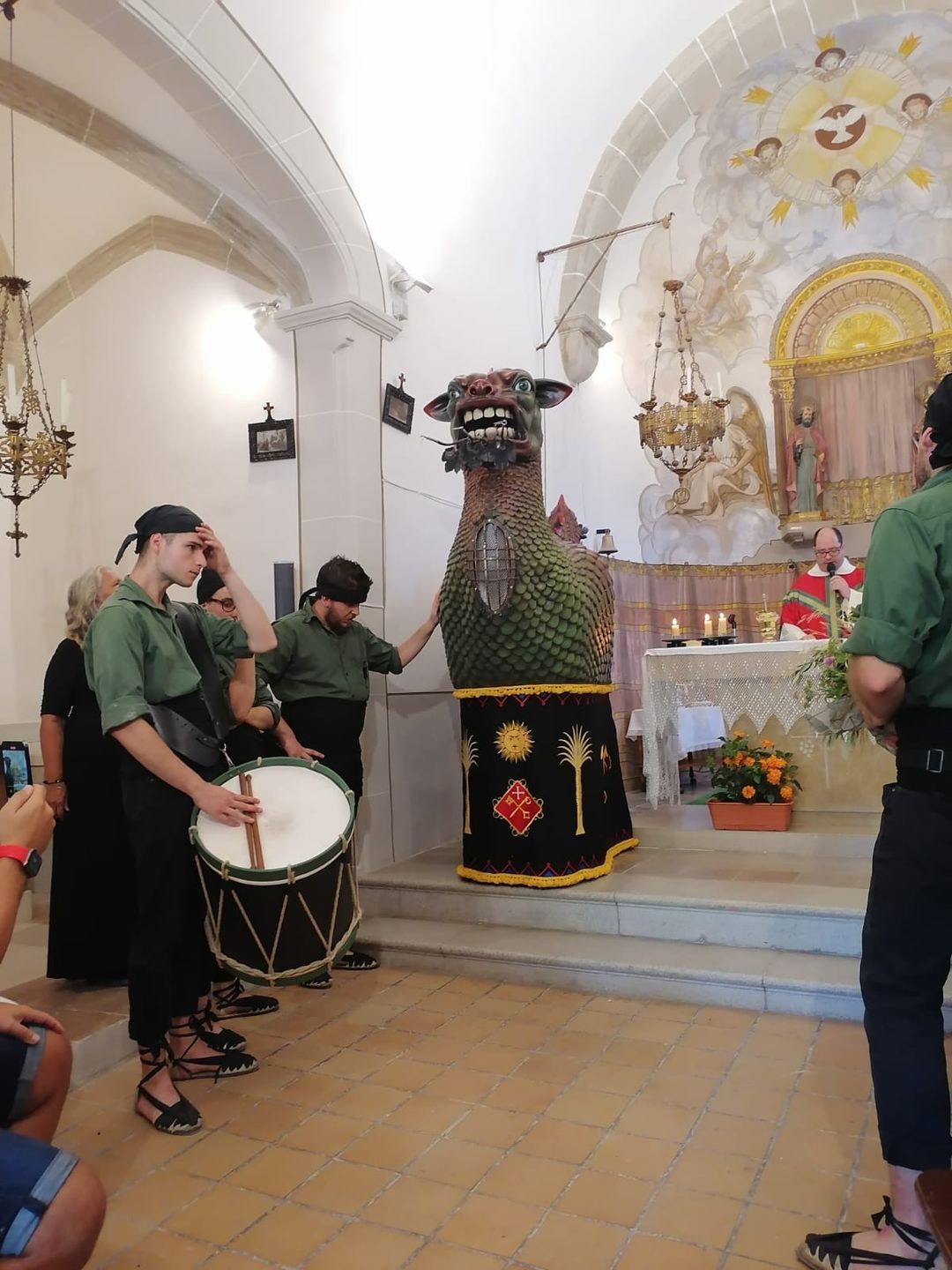Tal com explica el constructor, s’ha optat per pintar la bèstia amb uns tons verds i vermells “molt tradicionals” perquè van en la línia de “buscar aquest aspecte de la terra, ja que la combinació d’ambdós colors genera una gamma de tons rogencs i taronjosos”.