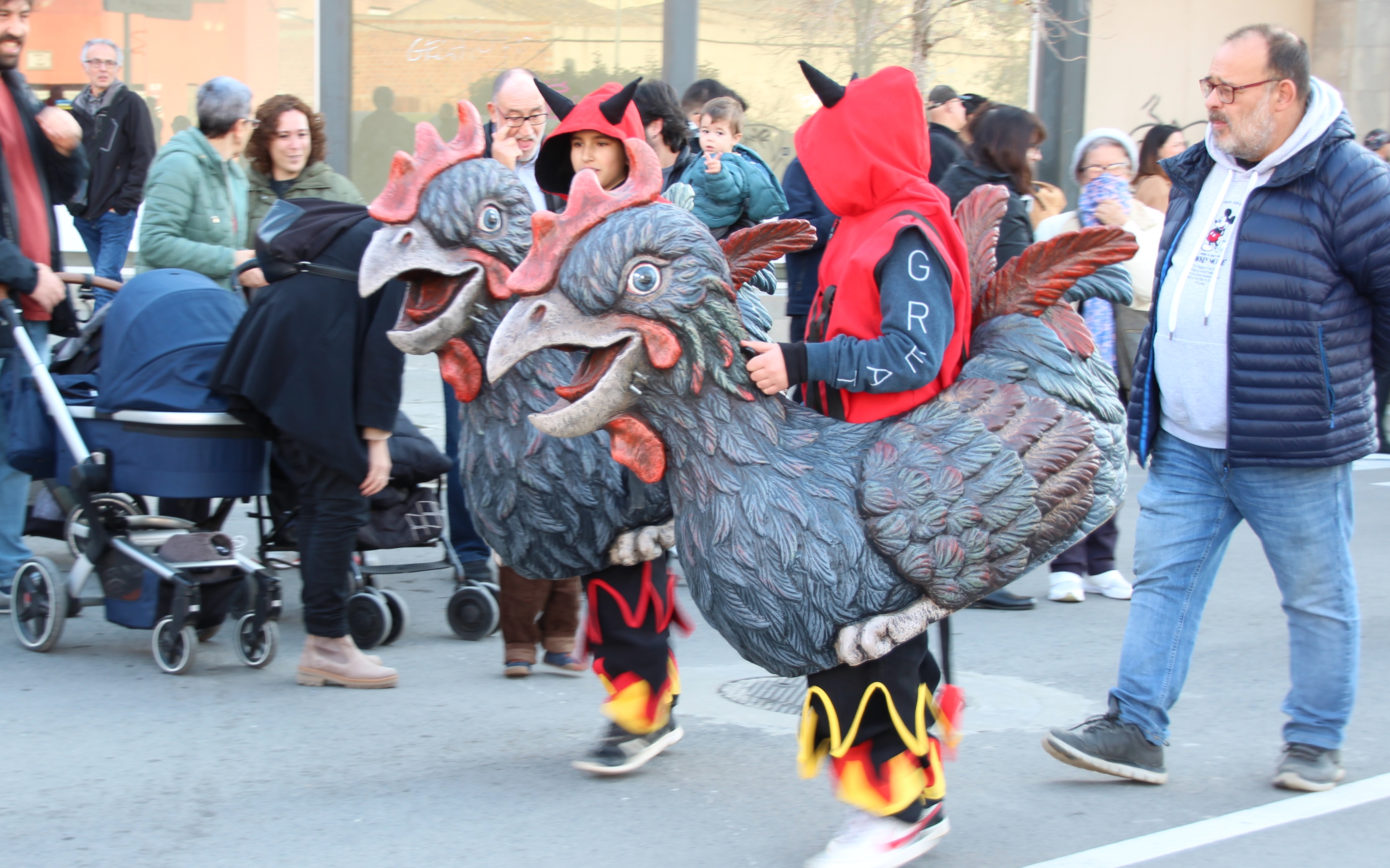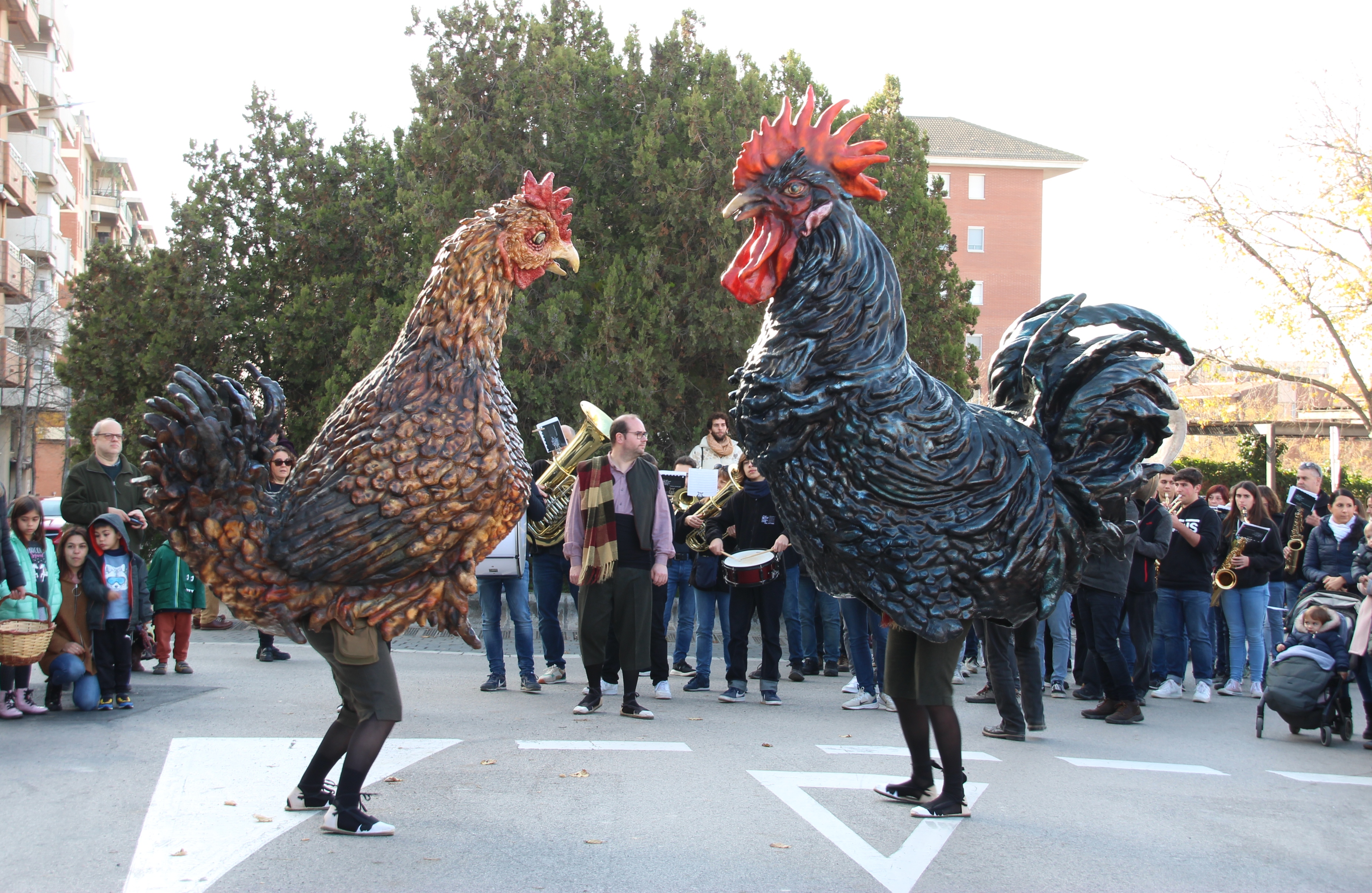 “Mira el gall què senyor, movent les potes!”. La veritat és que pocs detalls van passar desapercebuts als assistents quan a les dotze del migdia les bèsties es van posar en moviment. El Gall Tomasot i la Gallina Ballarica encapçalaven la cercavila acompanyats per la Banda de l’Escola Municipal de Música Maria Dolors Calvet. Encara no havien sortit del parc de Sant Julià quan la gent, ben atenta al ball que estaven fent, es va fixar en el caminar dels portants de les bèsties, que imitava el moviment dels galls i les gallines.