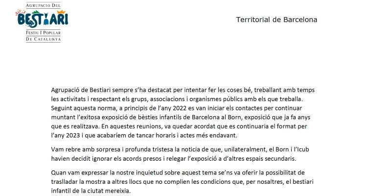 Comunicat de la secció territorial de Barcelona de l’Agrupació del Bestiari