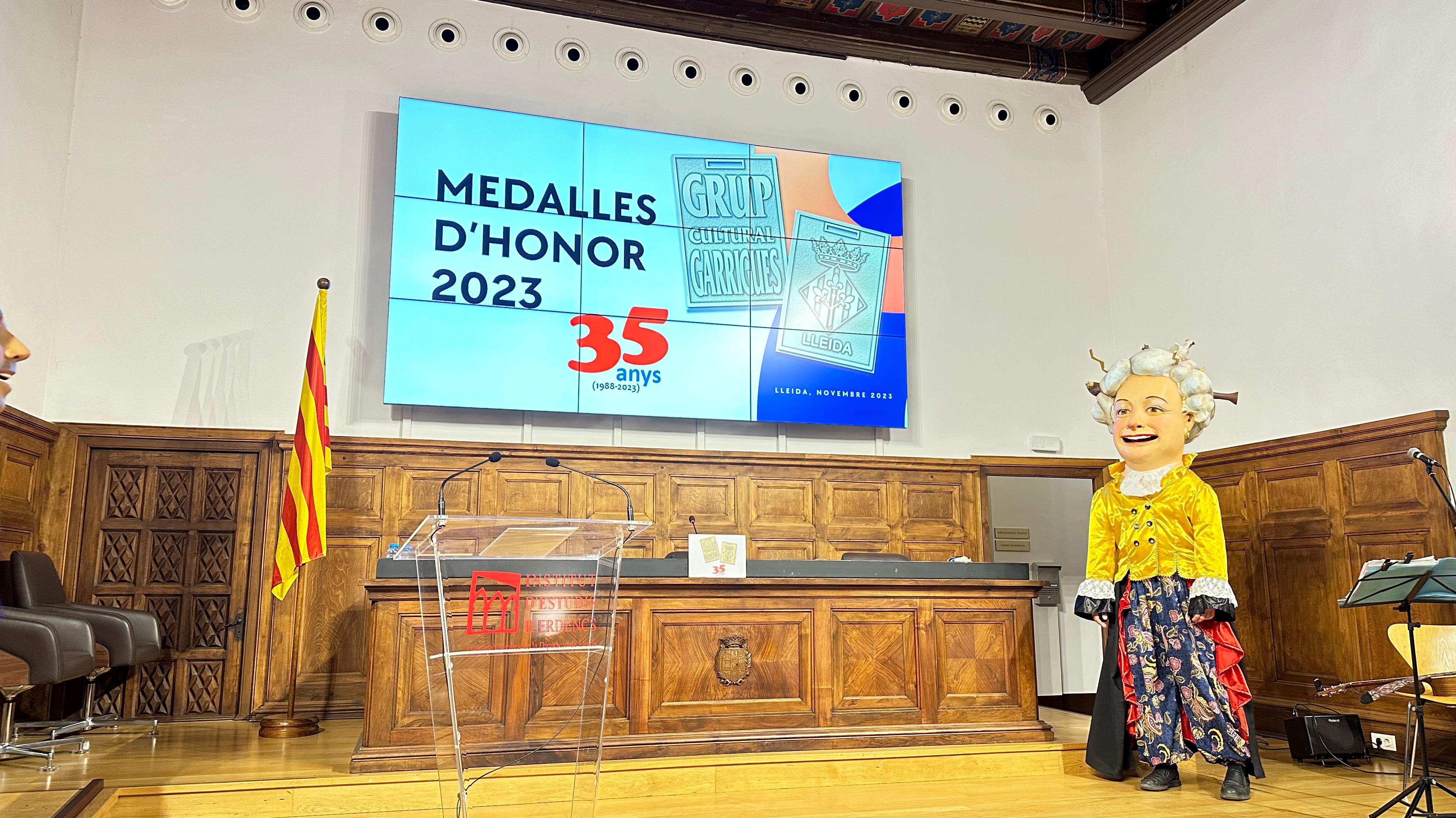 Avui, dissabte 4 de novembre de 2023 hem rebut la Medalla d’Honor 2023 de la mà del Grup Cultural Garrigues. L’entrega de la medalla ha tingut lloc a l’Aula Magna de l’Institut d’Estudis Ilerdencs – IEI. El Grup Cultural Garrigues ha considerat que Bestiari som uns dels protagonistes que han escrit la seva història durant aquests 35 anys que fa que caminem plegats.