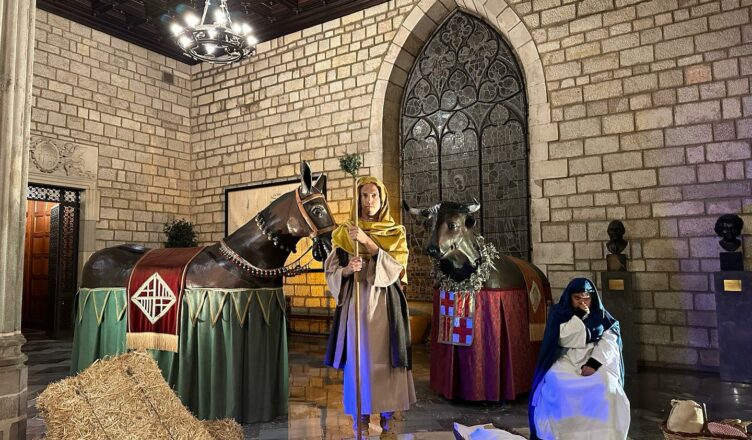 L’acte acollí diferents escenes dels pessebres vivents de la Torre del Suro, del barri del Guinardó de Barcelona i el Pessebre Vivent de Corbera de Llobregat. Tot emmarcat en el Pati de Carruatges de l’Ajuntament de Barcelona, l’escala de pedra i la Galeria Gòtica acompanyades pel Bou i la Mulassa de Barcelona