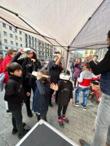 Ivan Caro va ser l’encarregat d’amenitzar la vetllada ensenyant a infants i adults algunes de les músiques i danses més populars i fent ballar a tota la plaça. I, per tot aquell qui va voler, Bestiari va posar a la seva disposició ulleres de Realitat Virtual per gaudir del projecte “Toc d’Inici 360º”. Aquí podeu veure un resum de la jornada de TRIX.