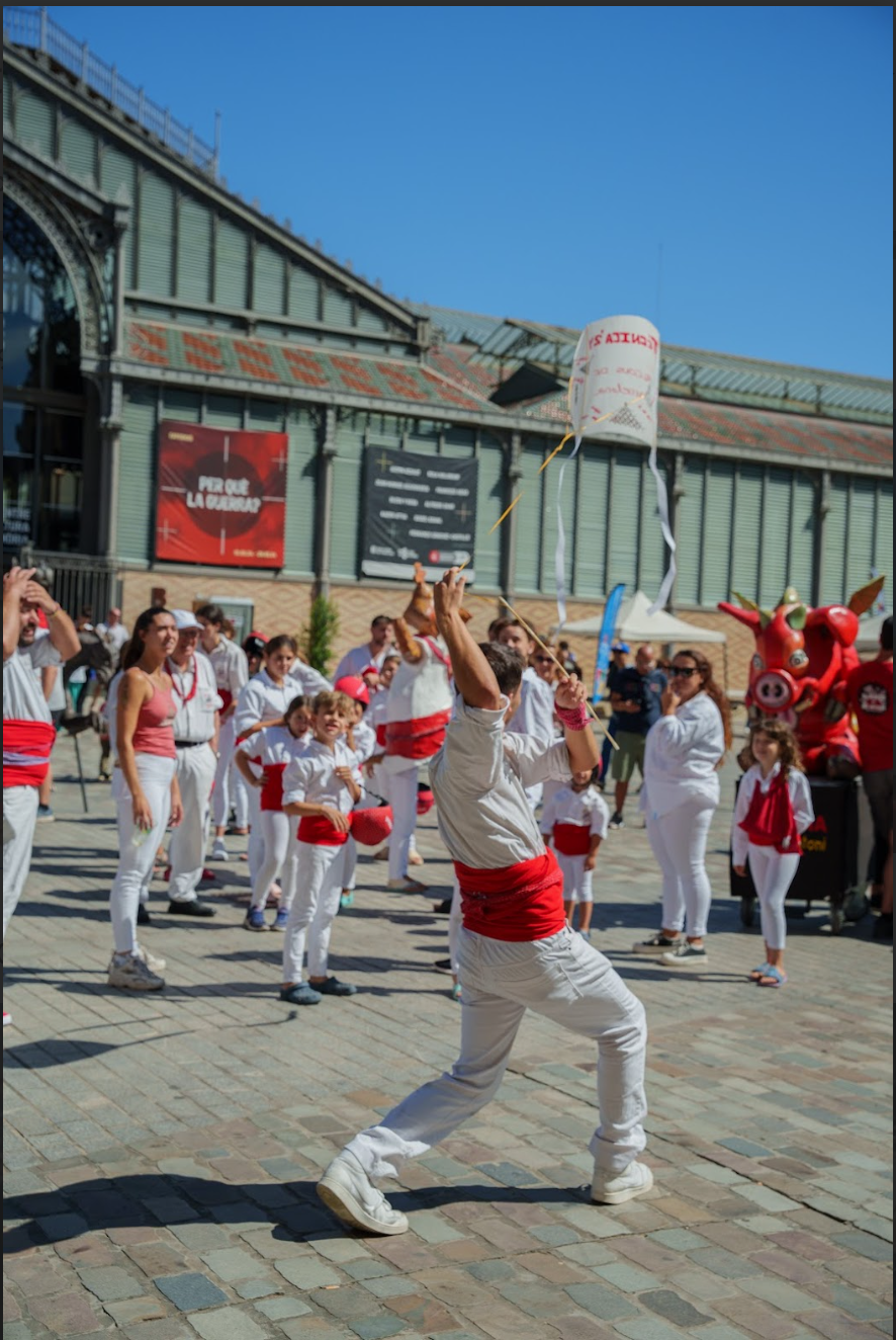 La canalla de la colla dels Falcons de Barcelona van fer una actuació amb figures com l’Escala caminada de 3, la Serra amb quatre pilars de 2 i dues puntes, Pira 3×3, lleons, dos Vols de 3 i dos de 2, Planxa acompanyada de dos Ventiladors, una Escala de 5 amb puntes i un Pilar de 3 aixecat per sota i deixat net. Seguidament, van oferir un taller per tota la canalla que va voler provar què era això de “fer falcons”. Els tabalers del Mercadal Infernal van oferir un taller de percussió per a tots els infants i adults que van voler agafar unes baquetes, Drac, Diables i Gegants de la Sagrera van oferir un taller de xapes per la trobada amb xapes pròpies i de lliure creació i les coles també van oferir tallers de pinta la teva bèstia entre molts d’altres.