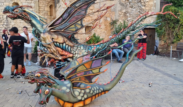 Quan faig un drac sempre busco les diagonals, les formes forçades i expressives i calculo que sigui atractiu des de qualsevol punt de vista, de darrera de davant o des d’un balcó. El que m’interessa sempre és tenir en compte el perfil, jugant amb el buit i el ple per crear efectes dramàtics. Les ombres creades pel perfil d’una bèstia amb el foc li donen un aire màgic – Dolors Sans