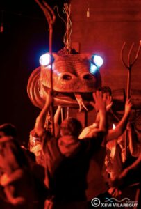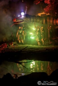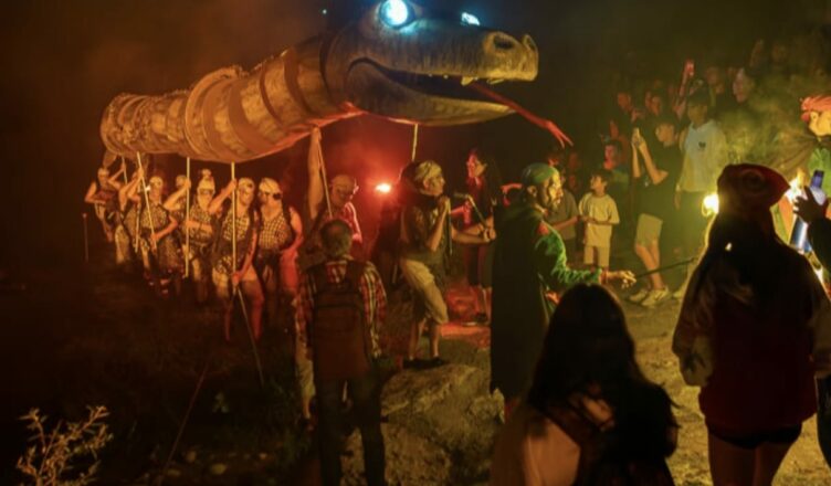 Però el plat fort de la jornada arriba amb la caiguda del sol. El Serpent apareix a la Devesa i s’inicia l’espectacle nocturn: un muntatge amb llum, foc, música i efectes visuals que dona vida a la llegenda d’una forma espectacular, davant centenars d’espectadors.
