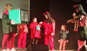 Seguidament, el ball de les integrants del grup Illes Columbretes va donar pas a la preparació de la representació teatral de la vida cantada de Sant Antoni, a càrrec de membres de Botafocs, així com al lliurament de les butlletes del tradicional sorteig del porquet.