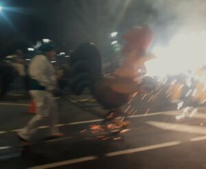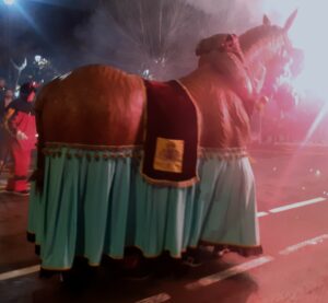A partir de les 18.15 h, es va dur a terme la plantada del bestiari, amb les figures d’Esparreguera i de Castelló de la Plana, que van omplir l’espai de color i tradició. Paral·lelament, a l’interior del Casal Jove, van començar les activitats musicals, amb un recordatori de cançons en català i les actuacions dels grups Moshdown i Escuadrón de Medianoche, que van congregar un nombrós públic.