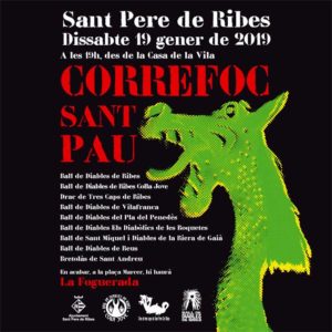 Sant Pere de Ribes Dissabte 19 de gener de 2019. A les 19h, des de la Casa de la Vila. Colles participants: Ball