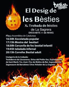 Programa d'actes: 18h Plantada de bestiari 20:45h Processó fins l'Ajuntament 21h Tabalada A continuació, Correfoc 00:30h Festa al Polígon amb DJ Manyé i Jsound