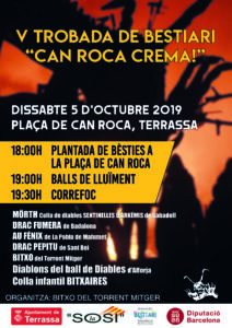 Trobar Esdeveniments Navegació de les vistes d'esdeveniments Veure com Llista Mes Dia Dia de Buscar Esdeveniments for 5 d'octubre de 2019 Navegació per dia « Previous Day Next Day » Tot el dia Exposició Botafocs: “Façanes, peixeres i un conte” … i altres objectes d’aniversari del nostre bestiari 3 d'octubre de 2019 a 30 d'octubre de 2019 Museu d’Etnologia de Castelló, Carrer Cavallers, 25 Castelló de la Plana, Espanya Per saber-ne més » V Trobada de Bestiari “Can Roca Crema!” 5 d'octubre de 2019 Plaça de Can Roca, Plaça de Can Roca Terrassa, Espanya Per saber-ne més » + Export Events