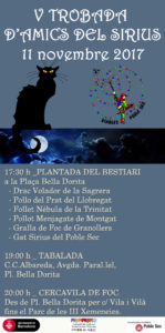 programa d'actes: 17:30h Plantada del Bestiari, a la Plaça Bella Dorita (Drac Volador de la Sagrera, Pollo del Prat de Llobregat, Follet Nébula