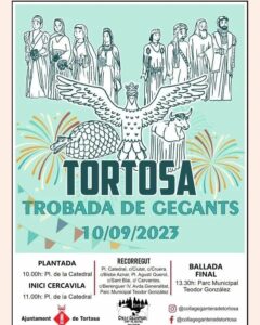 El dissabte 10 de setembre de 2023 a les 11 h, tindrà lloc la trobada de gegants de Tortosa. La plantada serà a