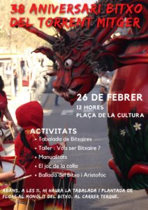 El pròxim diumenge 26 de febrer, la colla del Bitxo del Torrent Mitger convida tothom a celebrar a Terrassa el seu 38è aniversari