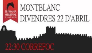 Amb motiu de la Diada de Sant Jordi, del 22 d'abril a l'1 de maig Montblanc celebrarà la Setmana Medieval. Precisament, divendres 22 d'abril es farà un correfoc pels carrers i places de la vila, que comptarà amb la participació dels Dimonis de Montblanc, el Drac de Montblanc, el Drac de Reus i altres colles convidades. El recorregut passarà per: Plaça de Sant Francesc, Portal de Sant Francesc, Muralla Jaume II, Portal de Bové, Riber, Font de la Vila, Jueus,…