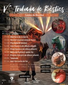 Dissabte 23 d'abril, la plaça del Lleó de Caldes de Montbui acollirà la cinquena Trobada de Bèsties organitzada pel Ball de Diables de la localitat. L'acte comptarà amb l'assistència de bèsties com el Bitxo del Torrent Mitger de Terrassa, l'Atzeries de la Vila de Gràcia i la Godra de Caldes de Montbui. Programa d'actes: 11 h: Obertura de la barra 13 h: Vermut musical amb DJ Putxi 16 h: Plantada de bèsties 16 h: Inici del Concurs de dibuix infantil…