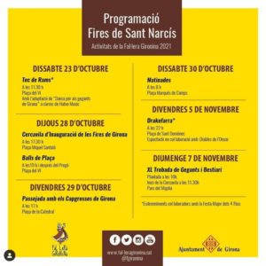 El pròxim diumenge 7 de novembre, amb motiu de les Fires de Sant Narcís, tindrà lloc la 40a Trobada de Gegants i Bèsties. L'acte començarà a les 10 h, amb una plantada d'imatgeria festiva al Parc del Migdia. A les 11.30 h tindrà lloc la cercavila.