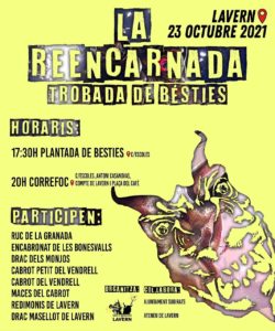 La Reencarnada de Lavern arriba aquest dissabte amb un espectacular correfoc. A les 17.30 h: Plantada de bèsties al carrer de les Escoles. A les 20 h: Correfoc. Sortirà des del carrer de les Escoles i passarà pel carrer d'Antoni Casanovas, el carrer Compte de Lavern i la plaça del Cafè. Participen: Ruc de la Granada Encabronat de les Bonesvalls Drac dels Monjos Cabrot Petit del Vendrell Cabrot del Vendrell Maces del Cabrot del Vendrell Redimonis de Lavern Drac Masellot…