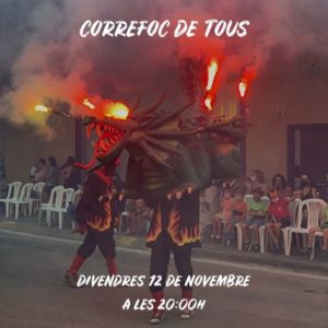 Divendres 12 de novembre tindrà lloc a les 20 h la celebració del Correfoc de Sant Martí de Tous en el qual participaran colles com el Grup Mal-llamp d'Igualada.
