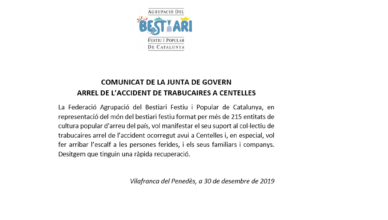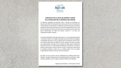 Comunicat de la Junta de Govern de l’Agrupació del Bestiari en referència a la publicació de la Sentència del Procés