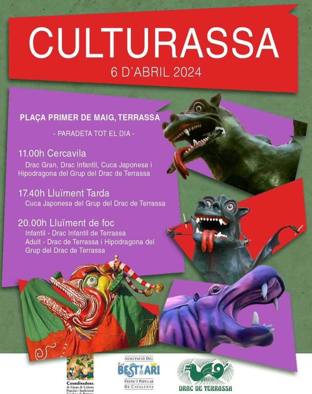 Hi participaran el Drac gran i el Drac infantil de Terrassa, la Cuca Japonesa, la Hipodragona i el Bitxo Torrent.