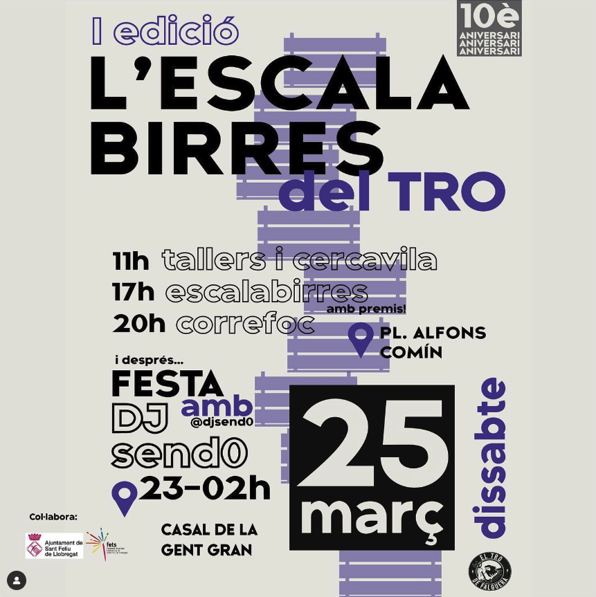 El pròxim dissabte 25 de març se celebrarà, a Sant Feliu de Llobregat, la 1a edició de l’Escalabirres. L’acte es durà a terme en el marc del 10è aniversari dels Diables i Timbalers del Tro de Falguera i hi participaran una vintena de colles de la rodalia.
