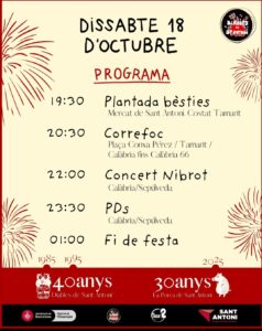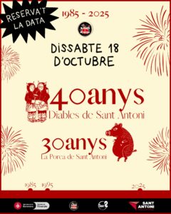 El proper dissabte 18 d’octubre es celebraran en un correfoc els 40 Anys del Diables de Sant Antoni i els 30 Anys de la Porca de Sant Antoni!