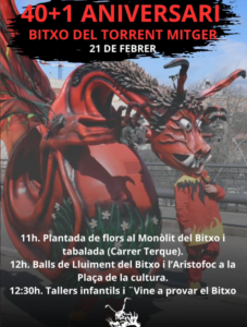 Aquest dissabte 21 de febrer el Bitxo del Torrent Mitger celebrarà el seu 41è aniversari! Us deixem els horaris:
