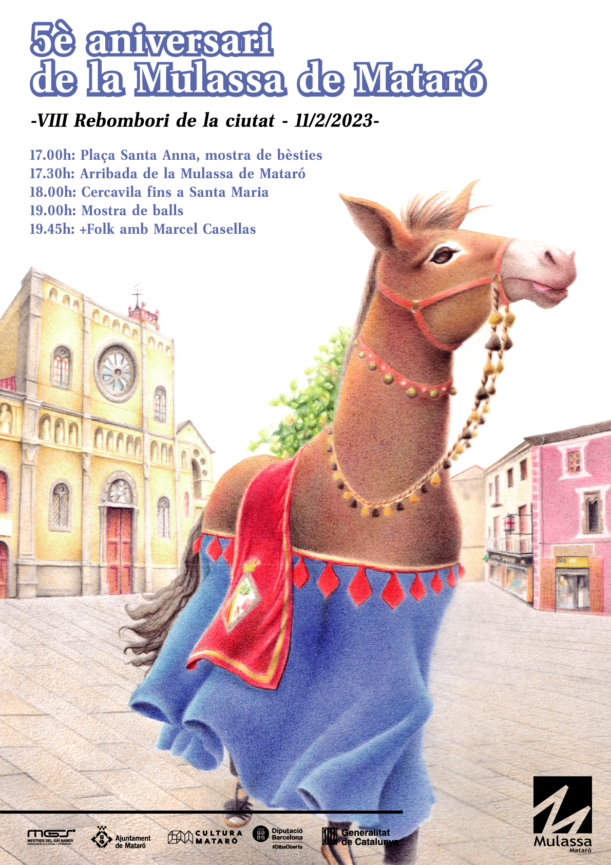 Ja s’acosta Carnaval i un any més la Mulassa de Mataró celebra el ‘Rebombori’, que enguany ja arriba a la vuitena edició. Enguany, a més, coincideix amb el seu cinquè aniversari. Apropa’t el dissabte 11 de febrer a Mataró a celebrar-ho amb ella al costat d’altres entremesos com: el Ball de Cercolets de Valls, la Mulassa de Sabadell, el Lleó de Gràcia de Barcelona i l’Àliga de Terrassa.