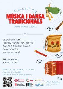 La programació es completa amb el Taller de música i dansa tradicionals amb Ivan Caro, que se celebrarà el 18 de març a les 17.30 h. L’activitat està adreçada a infants de 8 a 11 anys.