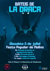 - 10.30h: Cercavila de bèsties: la Mamuteta, el Vilamut, el Godrac i la Draca enfilaran un recorregut pels carrers del barri, tot deixant anar alguna esquitxada. Estaran ben acompanyats musicalment pels tabalers dels Geganters dels Molins i pels tabalers del Godrac.