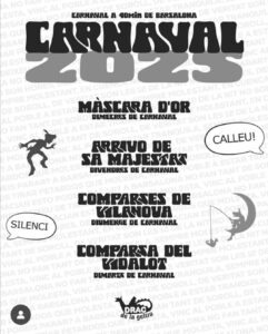 Consulta el programa a https://carnavaldevilanova.cat/wp-content/uploads/2025/02/programa-carnaval-vilanova-i-la-geltru_2025.pdf