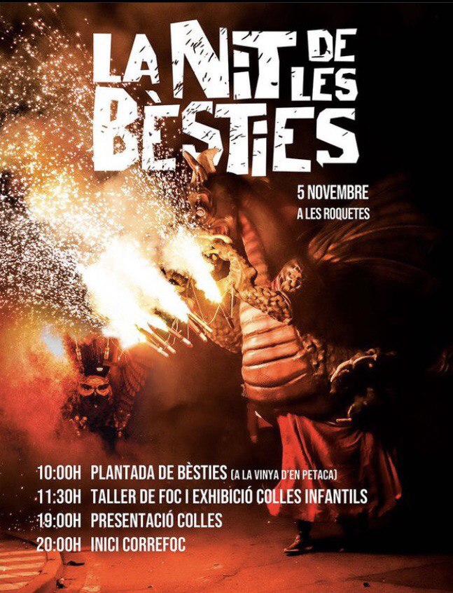 Una gran jornada amb bèsties i foc us espera aquest dissabte a les Roquetes, al municipi de Sant Pere de Ribes. La colla de la Dragona ha organitzat per aquest dia “La Nit de les Bèsties”. Al llarg de la jornada hi haurà: