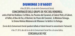 Diumenge 3 d’agost a les 20.30h, El Francàs (El Vendrell, Tarragona), acollirà la Concentració dels Grups de Foc del Vendrell.