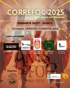 Arriba la festa major de Sant Jaume dels Domenys, i amb ella un dels actes més importants! El proper 26 de juliol, a partir de les 22h, el Ball Diables Sant Jaume Domenys, us conviden al correfoc de festa major amb: