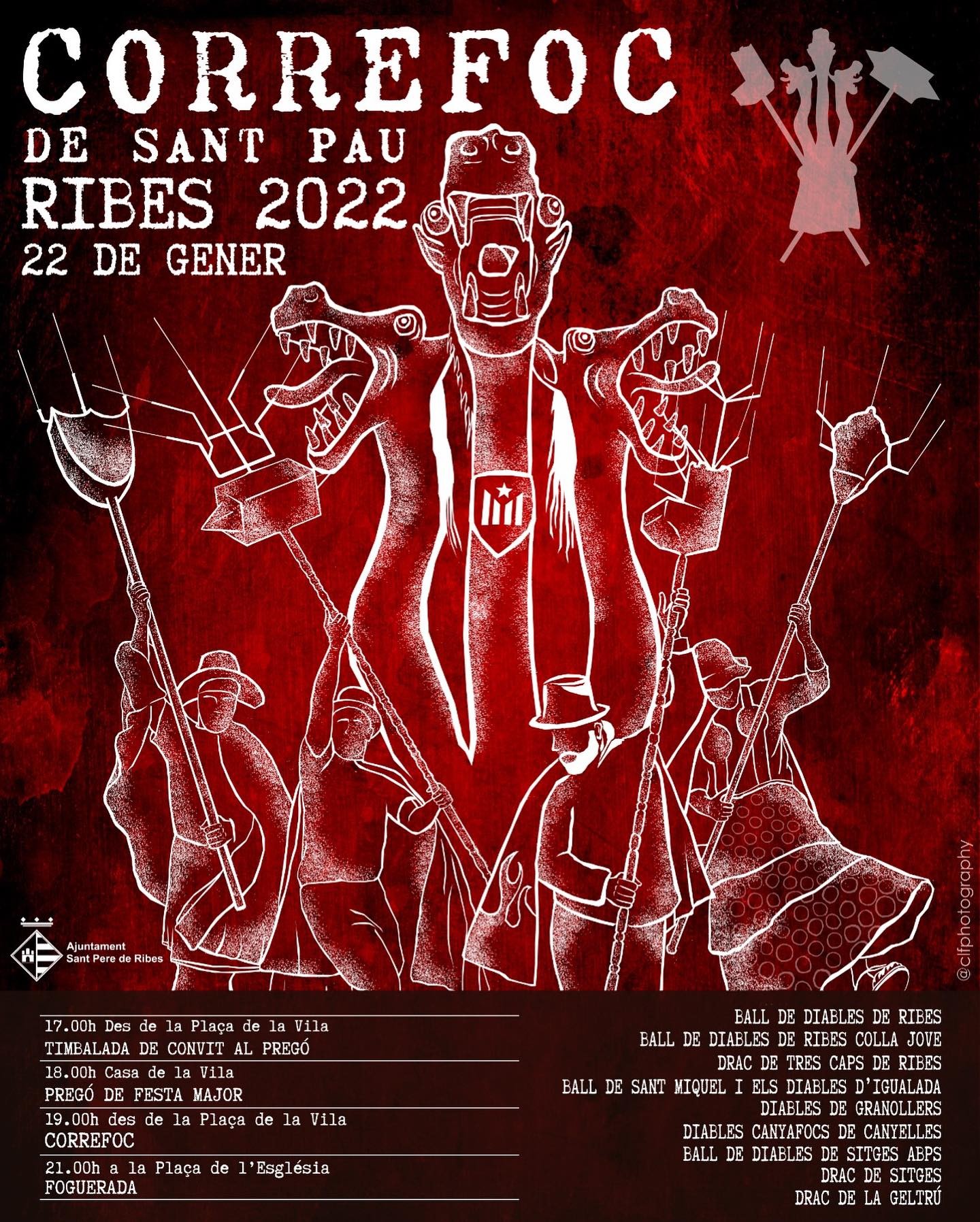 El pròxim dissabte 22 de gener tindrà lloc la celebració d’un correfoc a Sant Pere de Ribes amb motiu de la Festa Major de Sant Pau. Enguany l’acte s’emmarca en una efemèride especial com és el 50è aniversari del Drac de tres caps de Ribes, una bèstia que es va construir l’any 1972 al Taller El Ingenio de Barcelona a partir del disseny de Lola Anglada.